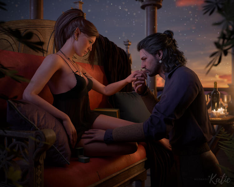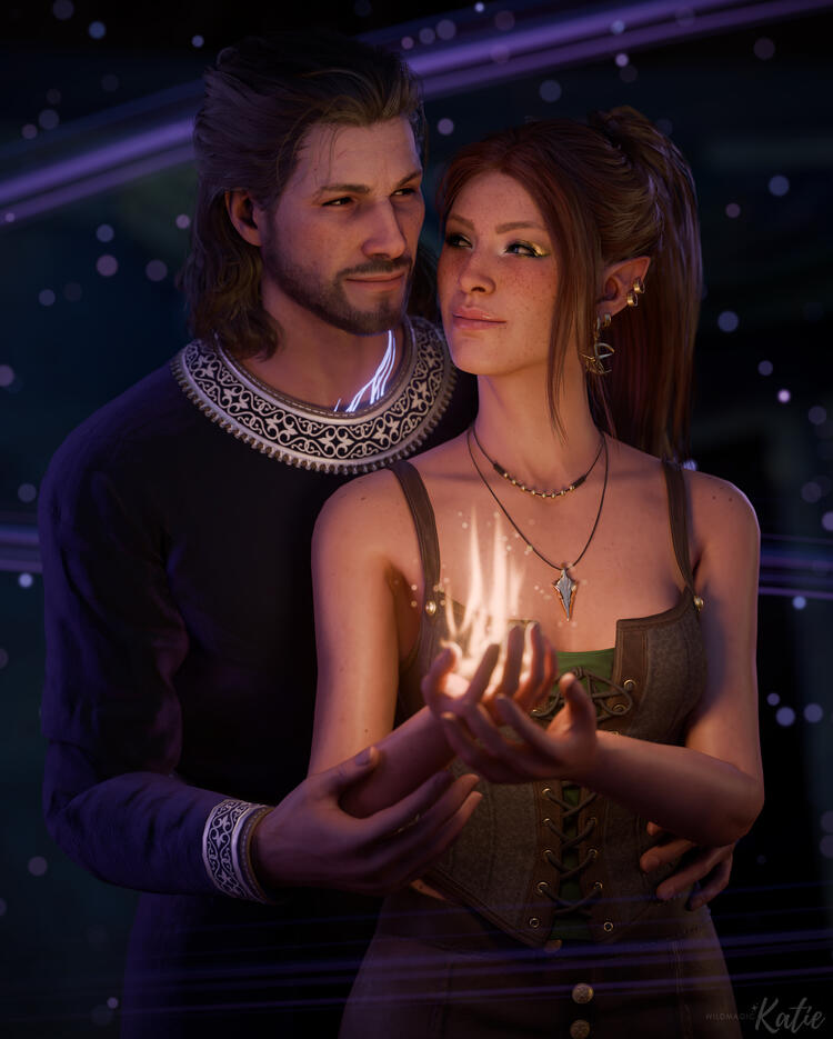 - All commissions are for personal use by the commissioner only, and I reserve the right to post commissioned work to my portfolio and my social media for self-promotion. If you would like your commission to be private, please let me know up front.- You must be at least 18 years of age to commission a render.- At this time, I am only working with characters from Baldur's Gate 3.- I reserve the right to decline any commission request for any reason.- NSFW requests can be discussed. I am currently not accepting commissions for fully explicit scenes (fully visible genitalia), but I am comfortable with nudity and suggestive/implied poses.- The creation of one custom OC (original character/Tav/Durge) Blender model is included in any commission. Additional fees apply for heavily modded characters ($5 - $10 per character, depending on complexity) and for additional OC models (+$15 for the creation of an additional OC). Models are for my use only for your commission and will not be distributed.- Renders with more than 2 characters can be discussed and will be quoted at a higher rate based on complexity.- Mods are welcome with the mod author’s permission, but please note that some mods will not be usable. In this case, I am willing to work with you to find an alternative asset or cancel your commission, if you wish.- To build your OC's model in Blender, I will require all of the same information I would need to recreate them in game, along with at least one clear, up-close screenshot of their face from the magic mirror menu. I will also require a list of any mods used and full body screenshots of their outfit, if applicable.- Payment is accepted up front via PayPal or Ko-fi, only AFTER we have discussed and agreed upon your request. If I am building your OC’s model, payment is accepted after the model is approved.- Minor color correcting revisions can be made to the model at any point during the process (skin tone, hair color, etc). If I have to make any major mesh changes such as outfits, hairstyle, etc. after the model has been approved and I have started posing, then there may be additional fees.- Please allow me up to 4 weeks to complete your request. I usually work faster than this, but some requests can take a bit more time. I will provide updates at each stage of the process, but you can also keep up with my progress and current queue on my public Trello board, which is linked at the bottom of this page.- Upon completion, I will deliver two files: one with my watermark and one without. The version without my watermark is for your personal use only. If you would like to publicly share the final commission on social media (feel free to share!), I ask that you only post the version with my watermark on it.- I do not offer refunds unless I am for some reason unable to complete your request.- Use of my artwork (commissioned or otherwise) in AI training or generating is strictly prohibited.